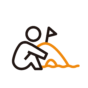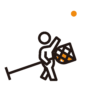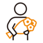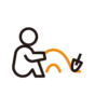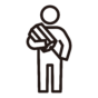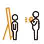 入学式の日に、看板の横で撮影する人のピクトグラムです。
