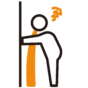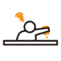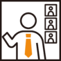 隣の席の人に、こっそり手紙を渡している人のピクトグラムです。